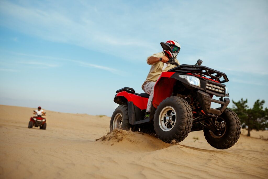 Feel the adrenaline racing across golden dunes on thrilling quad biking adventures.